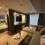 Suite (S2) Die freundlich eingerichteten Kabinen (ca. 24m²) verfügen über Dusche/WC, Föhn, zwei Einzelbetten oder einem Doppelbett, Klimaanlage, Minibar, Safe, TV, Telefon (gegen Gebühr) und französischem Balkon.
