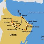 Muscat – Quriat – Wadi Tiwi – Sur – Wahiba – Wadi Bani Khalid – Ibra – Birkat al Mauz – Jabal Akhdar – Nizwa – Al Hamra – Misfah – Jabrin – Wadi Bani Awf – Muscat